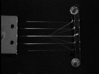 Description: Mount the curved mirror, which is concave on one side and convex on the other, and the 5-ray box on the blackboard, powering the ray box with as much as 12 V DC. Using the concave mirror, it is easy to see that the reflected beams converge at a point. With the convex mirror, you can extend the reflected beams back behind the mirror with chalk to show that they meet at the focal point.